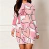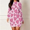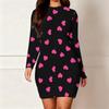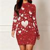 Podzim a zima 2025 Nové dámské módní šaty s 3D potiskem a barvením s motivem srdce, s dlouhým rukávem, kulatým výstřihem, obepínající boky, limitovaná edice ke Dni svatého Valentýna