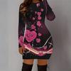 Podzim a zima 2025 Nové dámské módní šaty s 3D potiskem a barvením s motivem srdce, s dlouhým rukávem, kulatým výstřihem, obepínající boky, limitovaná edice ke Dni svatého Valentýna