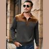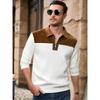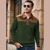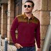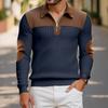 New Spring Autumn Casual Suede Polo Sweatshirt Men Stylish Knit Patchwork Textured Polo Shirts Mens Vintage Half-zip Lapel Jumper Tops