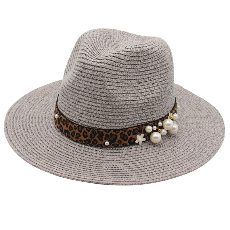 Spring And Summer 2022 New Panama Straw Hat Leopard Print Pearl Top Hat Men And Women Elegant Foldable Jazz Hat