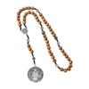 Catholic Rosary Wood Beads Necklace with Pardon Crucifix Medals for Christian Religious Event Prayer Chain Necklace