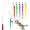 Retractable Rod Pet Cat Interactive Toy with 5 Refills Feather Worm Set