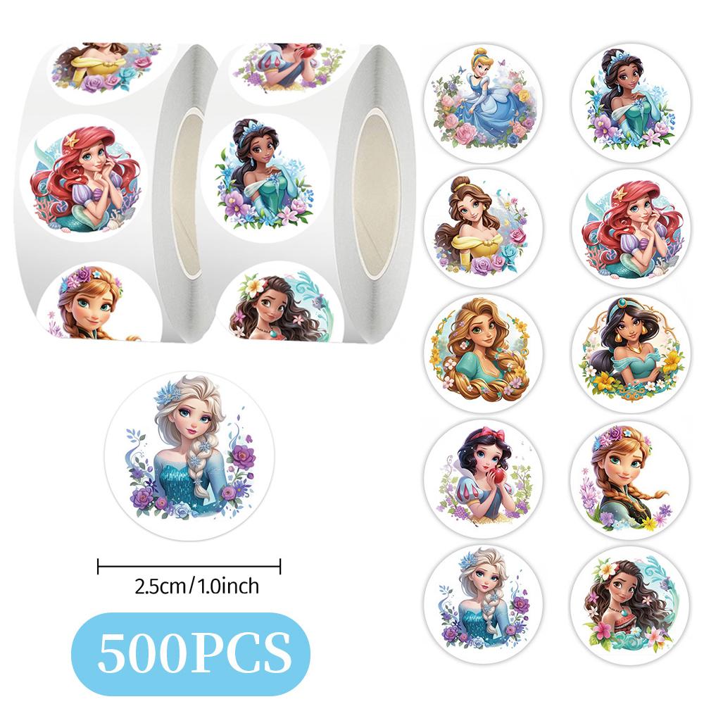 500pcs/Roll Disney Anime Princess Stickers Cute Ariel Snow White Seal Label Decals Reward Sticker Toy DIY Laptop Decoration Gift