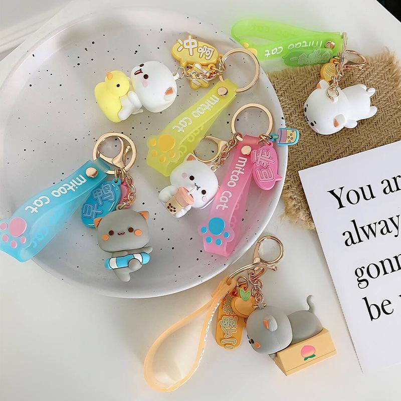 New Cartoon Cute Mitao Cat Figures Keychain Silicone Doll Cosplay Key Ring Kawaii Car Backpack Key Model Toys Party Kids Gifts — koupit online v obchodě na marketplace Joom