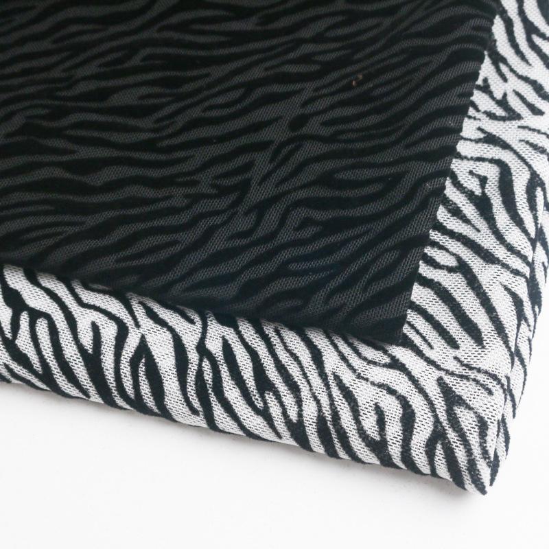 1yard Black White Color Zebra Stripes Print Flocking Mesh Fabric African Tulle Jacquard Velvet Fabrics for DIY Sewing Clothing