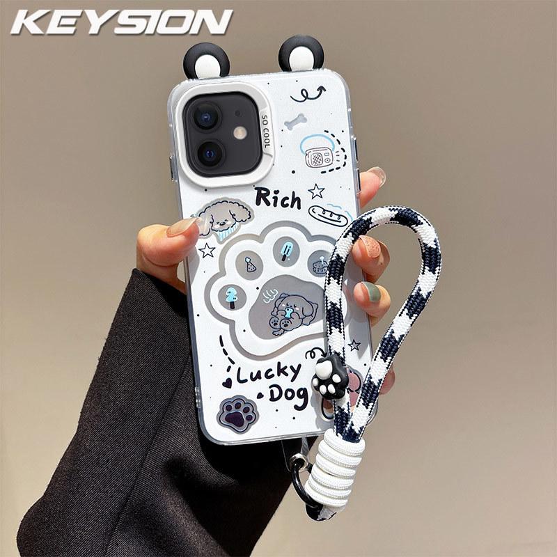 KEYSION Roztomilý Kreslený Pouzdro s Ušima pro iPhone 11 s Šňůrkou Měkký Silikon+PC Nárazuvzdorný Zadní Kryt Telefonu pro iPhone 11 — koupit online v obchodě na marketplace Joom