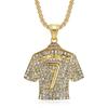 Evropský Americký Pozlacený Titanová Ocel Ronaldo Ne. 7 přívěsek náhrdelník s dressem a diamanty – Hip Hop styl