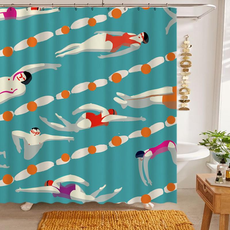 Sprchový závěs s motivem plavání Kreslený potisk Závěsná přepážka Voděodolná látka pro koupelnu Domácí dekorace koupelny — koupit online v obchodě na marketplace Joom