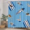 Sprchový závěs s motivem plavání Kreslený potisk Závěsná přepážka Voděodolná látka pro koupelnu Domácí dekorace koupelny