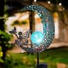 Solar Lights Outdoor - Garden Decorative Moon Solar Lights with Fairy Outdoor Metal Crackle Glass Globe Stake Garden Decor for Pathway, Lawn,Yard