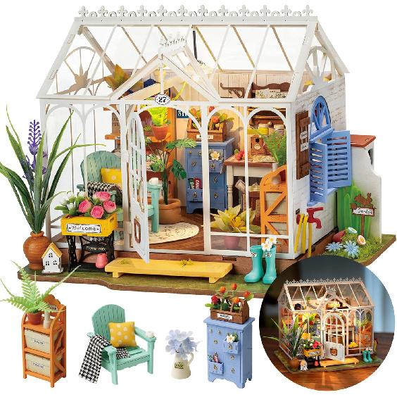DIY Miniature House Kit Dreamy Garden House, Tiny House Kit for Adults to Build, Mini House Making Kit with Furnitures, Halloween/Christmas