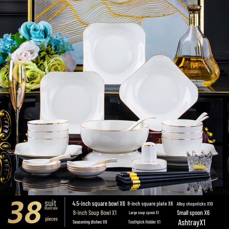 Keramická jídelní sada Jingdezhen se zlatým okrajem — koupit online v obchodě na marketplace Joom