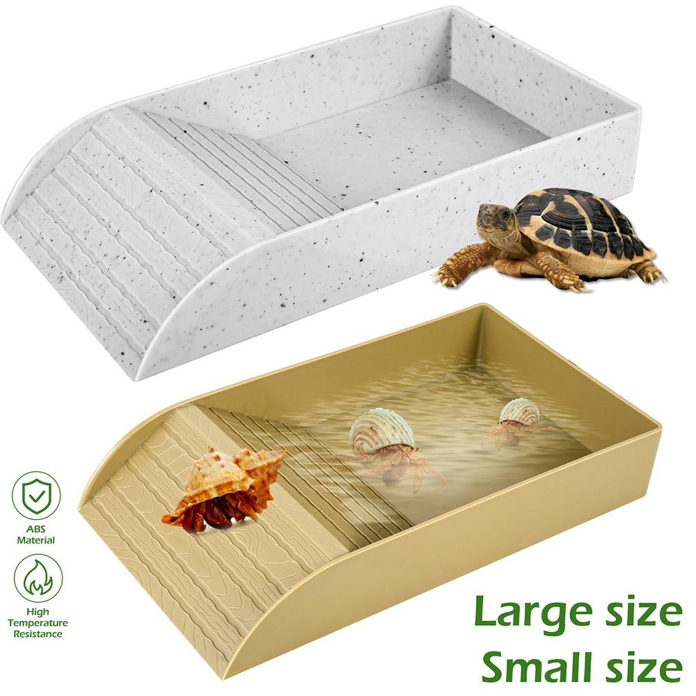 [Multipurpose] The turtle water dish with ramp can be used for reptile bathing, as a reptile habitat, or as a food or water bowl, ideal for various reptiles such as turtles, horned frogs and lizards.