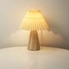 European Bedroom Table Lamp Bedside Nightstand Light Handmade Rattan Pleated Aesthetic Vintage Lamp Decorative Room Night Light