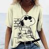Dámská trička Disney Snoopy 3D potisk Nová V-výstřih Krátký rukáv Letní Ležérní Dámské oblečení Harajuku Y2K Hip Hop Oblečení