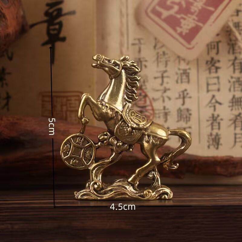 Mosazný kůň Krok na mincích Socha štěstí Feng Shui Desk Ornament Zodiac Figurky zvířat Miniatury Čistá měď Sbírky řemeslných výrobků