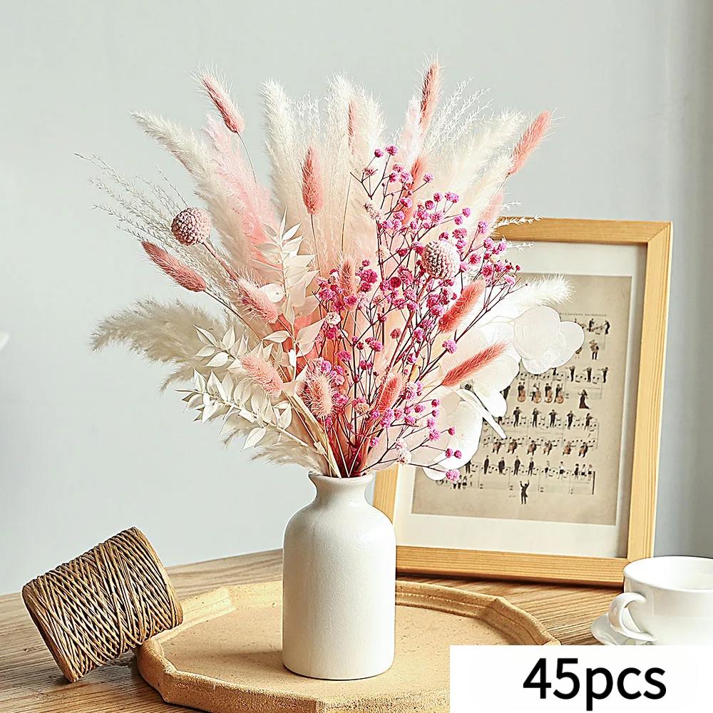 Bouquet of dried flowers pink and white, table centerpieces for weddings, natural pampas grass, real northern gypsophila — koupit online v obchodě na marketplace Joom