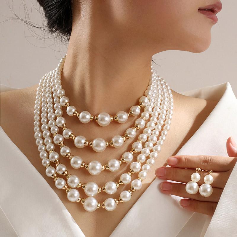 Kymyad Sets Simulated Pearl Beads Multilayer Necklace Earrings Set For Women Bijoux Statement Collar Necklace Set — koupit online v obchodě na marketplace Joom