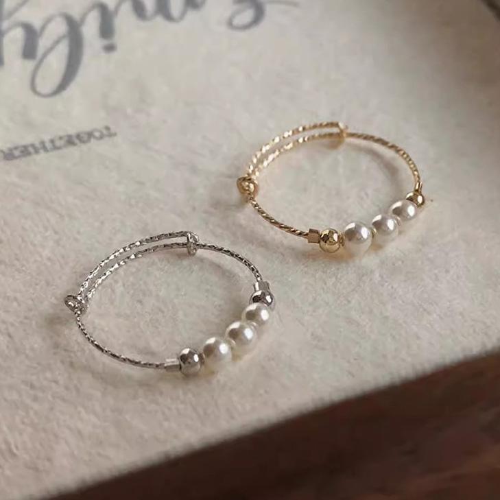 PONYKISS Silver Color Pearl Bead Round Adjustable Rings for Women Minimalist Trendy Fashion Light Luxury Accessories