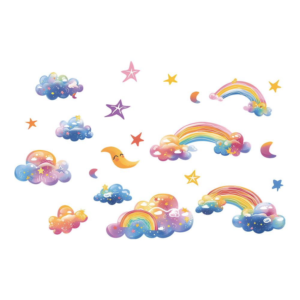 Rainbow Star Cloud Wall Sticker Self-Adhesive Removable for Kids Bedroom Kindergarten Background Wall Decoration