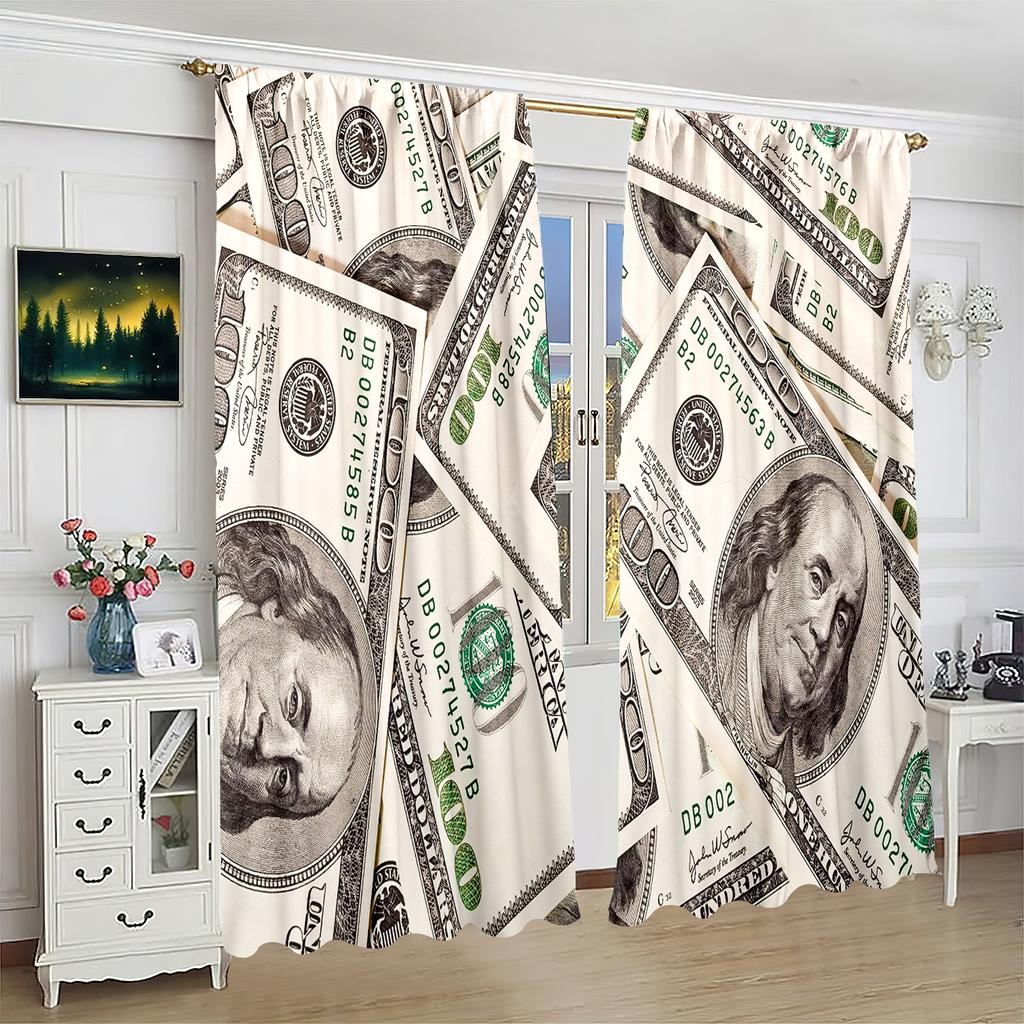 2 pieces of Us dollar bill printed curtains pole bag curtains 29*64 inches home decoration room decoration