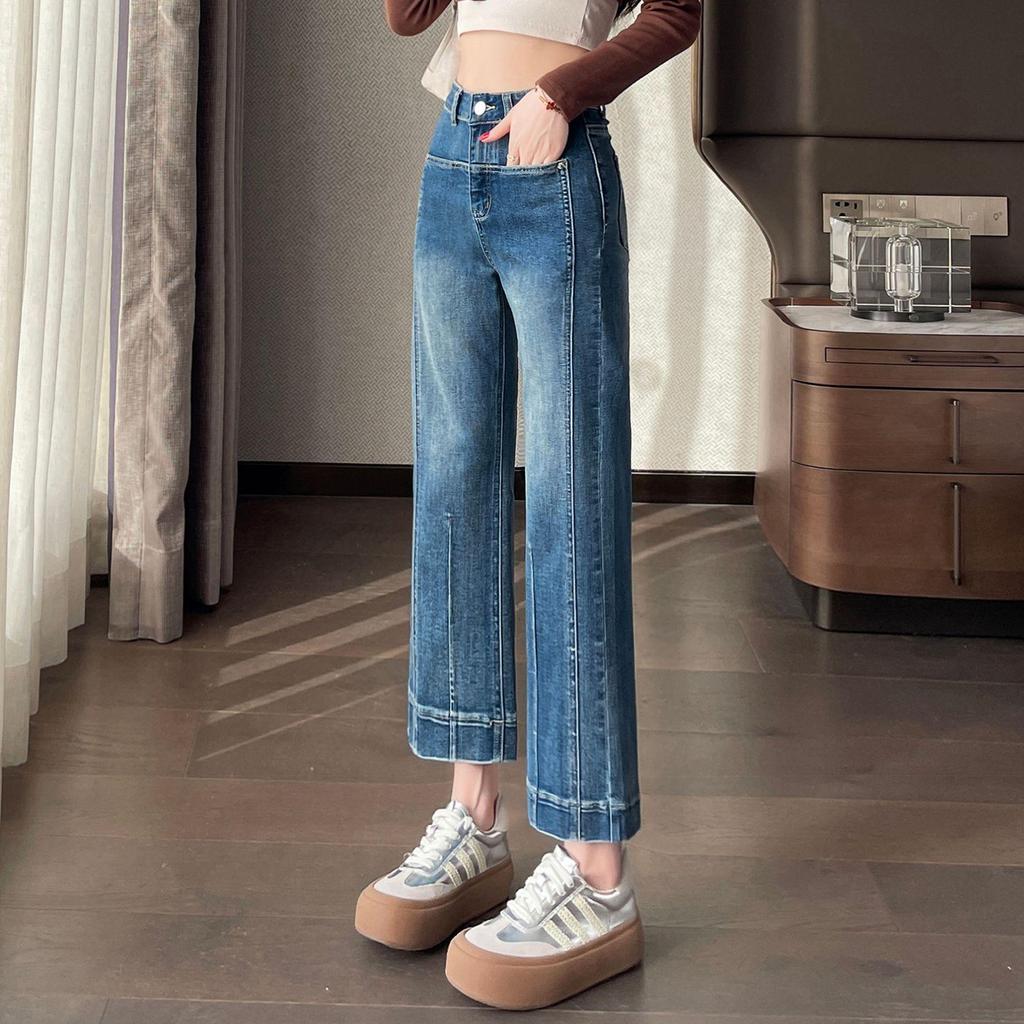 Women's High Waist Stretch Spliced Cropped Jeans, Petite & Tall, Slimming Fit, Narrow To Wide Leg, Spring/Summer 2026 Collection. — koupit online v obchodě na marketplace Joom