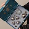 Dunhuang style black thangka heat-resistant ceramic kung fu tea bowl set with lid,gold and silver inlay high-end tea ceremony