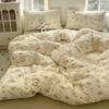 G5Z25 Jacquard Four-Piece Nude-Sleep Bedding Set with Cloud-Feel Double-Layer Gauze for Girls, Includes Duvet Cover and Fitted Sheet