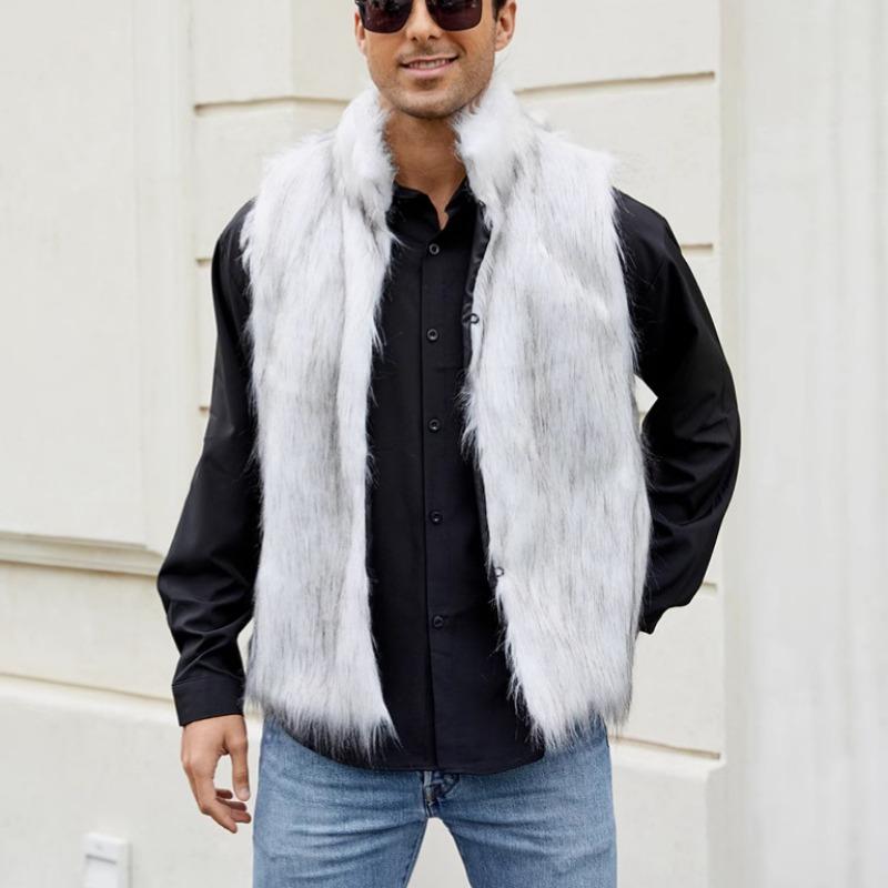 Pánská šedá vesta z umělé kožešiny, otevřená vpředu, bez rukávů, teplá zimní vesta, ochrana