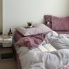 G5Z Winter Luxury Striped Flannel 4-Piece Set: Thickened Cotton Duvet Cover & Bed Sheet