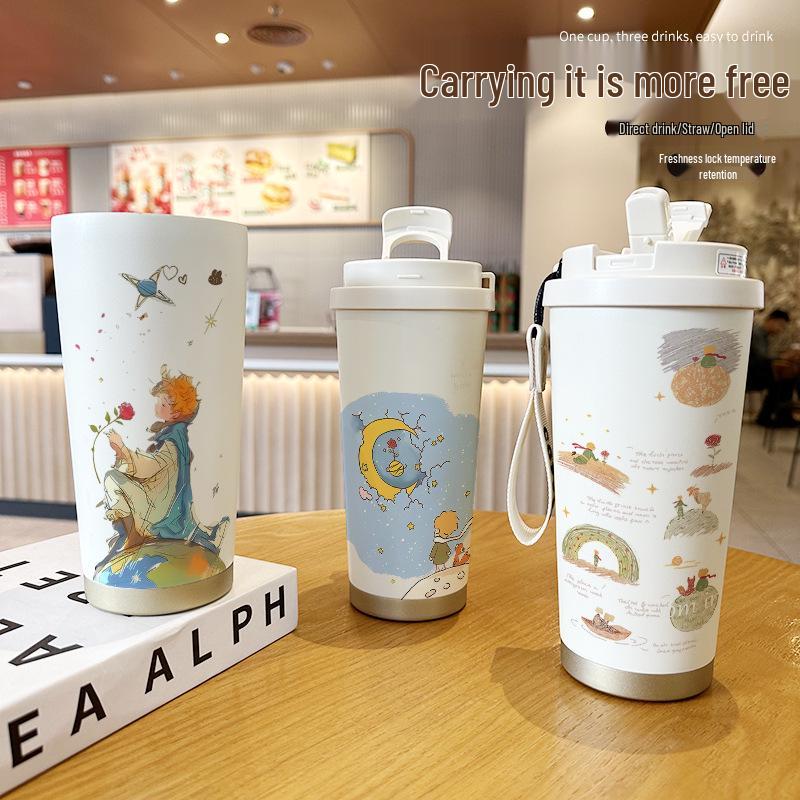Malý princ 316 Nerezová ocel Izolovaný dětský hrnek se slámkou - Přenosná edice pro kávu a narozeninový dárek