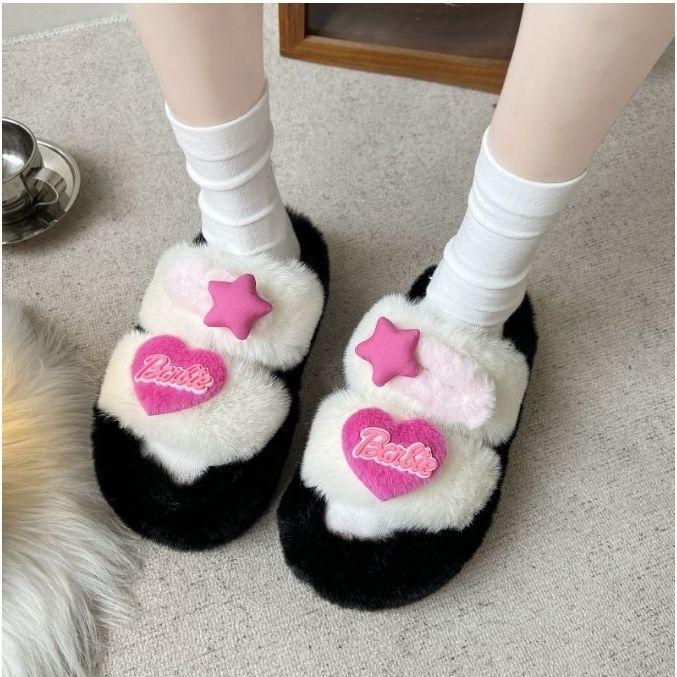 Rabbit fur premium trendy plush slippers wear fluff feeling small fragrance sweet sister cotton drag fried street cute