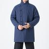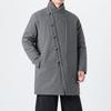 Pánská silná bavlněná lněná bunda v čínském stylu s žabími knoflíky, stojáčkem, střední délky, velikost Plus Size Tang oblek.