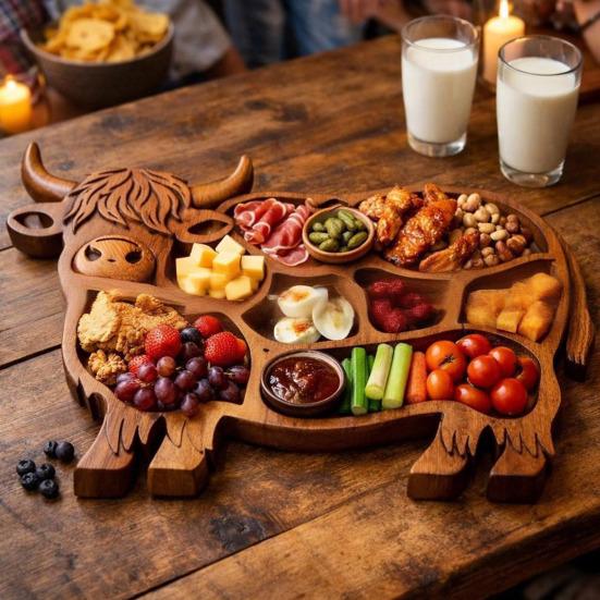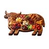 Dřevěná charcuterie deska s krávou z Vysočiny Roztomilý servírovací podnos ve tvaru krávy Rustikální farmářský talíř na jídlo s přihrádkami na sýr maso ovoce svačiny — koupit online v obchodě na marketplace Joom