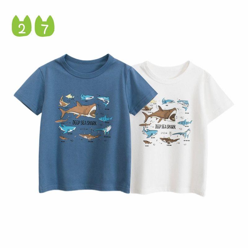 27Kids Children's Clothing Korean Style Kidsren's Round Neck Short-Sleeved T-Shirt Boys Shark Ocean Clothes Baby Boy Pure Cotton Top — koupit online v obchodě na marketplace Joom