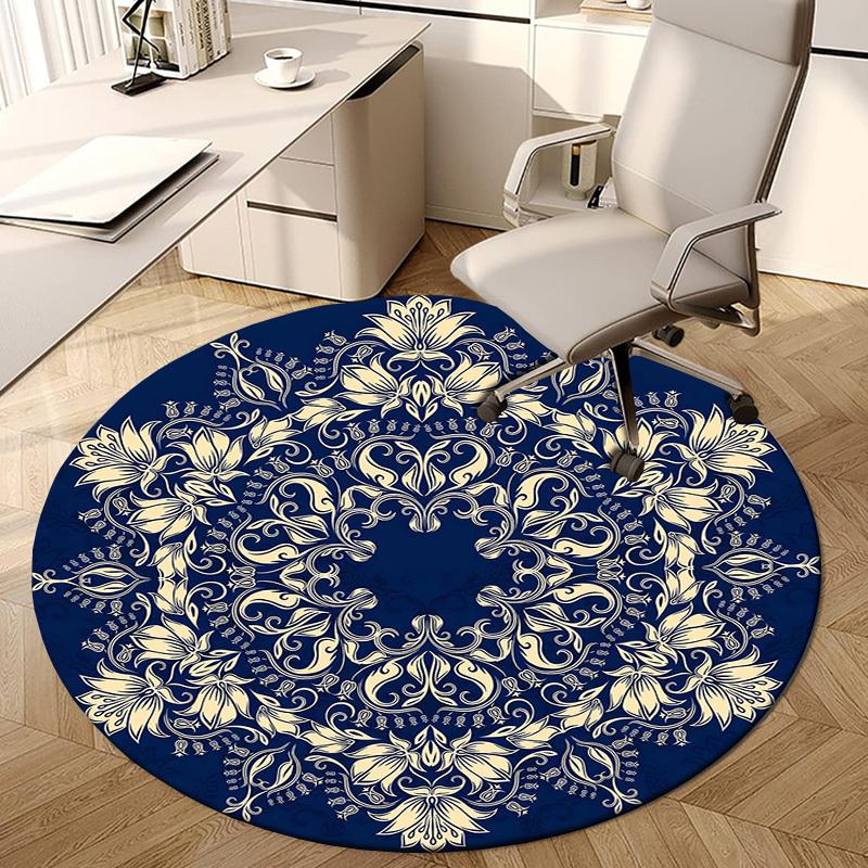 1pc Blue and Gold Floral Mandala Pattern Round carpet, Made of Polyester,Perfect for Decorating Office Chairs, Living Rooms,Vibrant Decorative Rug