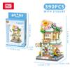 City Street View Series Panda Coffee Shop House MOC Model Building Block Set Creative Flower Shop Bricks Boy Toys Kid