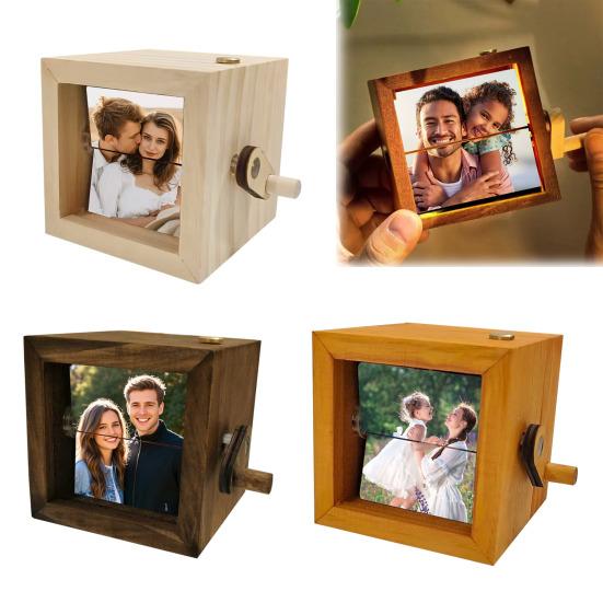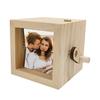 Personalizovaná výklopná krabička na fotky s designem ruční kliky: Přizpůsobte si svůj suvenýr vložením osobních fotografií do formátu flipbooku.. Ergonomická ruční klika umožňuje snadné listování a nabízí interaktivní způsob, jak si znovu prožít vzpomínky a zároveň vystavit své oblíbené obrázky v elegantním dřevěném rámu.