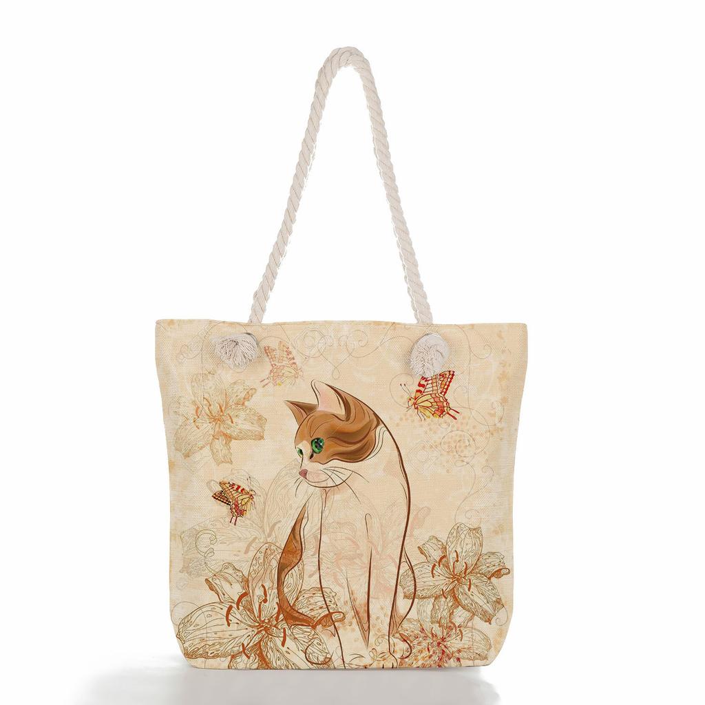 Cartoon cat print thick rope single-shoulder beach bag 7252 — koupit online v obchodě na marketplace Joom