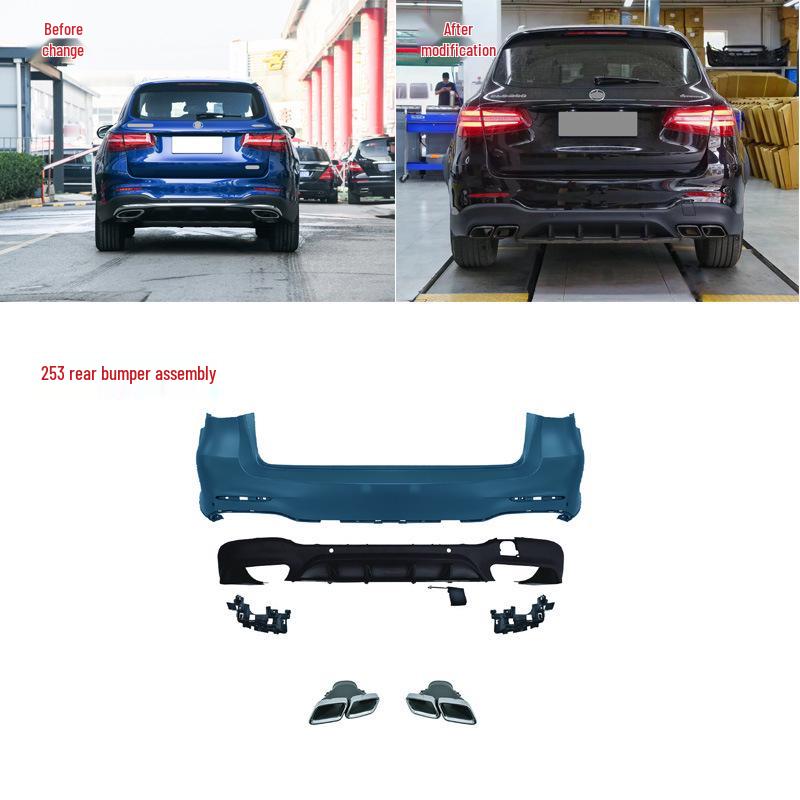 Compatible with Mercedes-AMG X253: GLC 63 front and rear bumpers, grille, and black/white/silver exhaust tips.