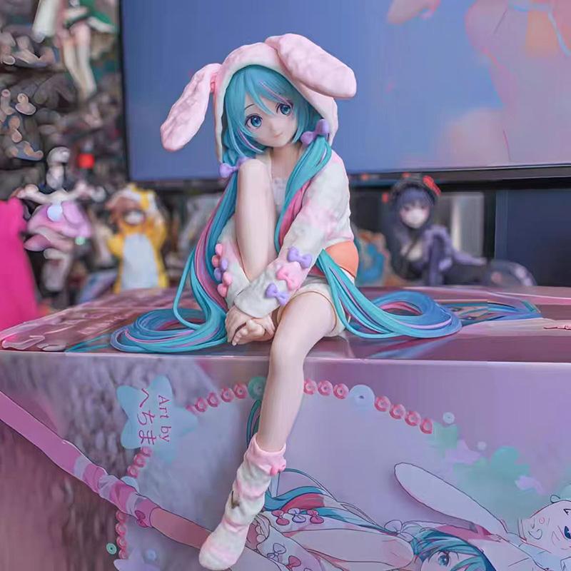 14CM Anime HATSUNE MIKU Figure Noodle Stopper Figure Rabbit Ear Pajamas Model Toy Japanese Dolls Aciton Figure Collection Gift