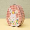 Okouzlující Design: Tyto ploché plechové krabičky ve tvaru vajíčka, zdobené roztomilými obrázky zajíčků, dodají vašemu velikonočnímu oslavení rozmarný nádech.