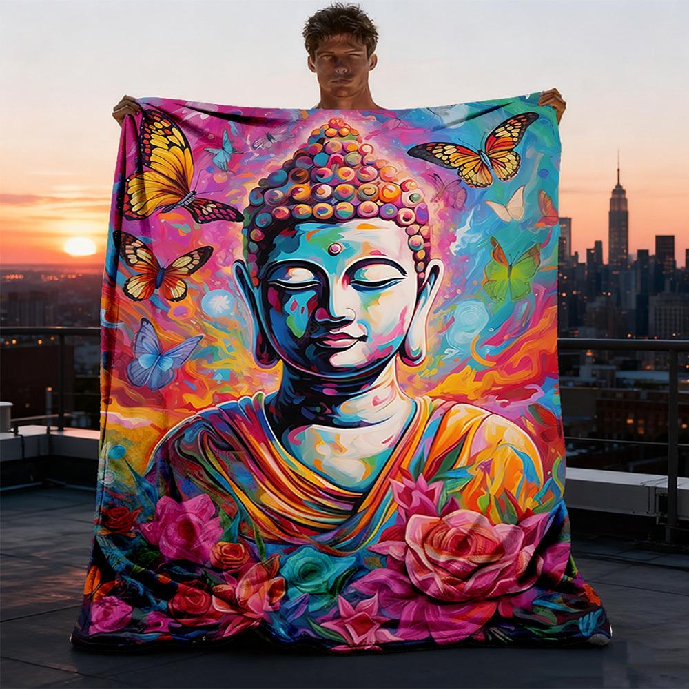 1pc Buddha Art, Butterfly Throw Blanket Polyester Fiber, Lightweight Flannel, Soft & Warm, All Season Use for Outdoor, Camping Digital Print — koupit online v obchodě na marketplace Joom