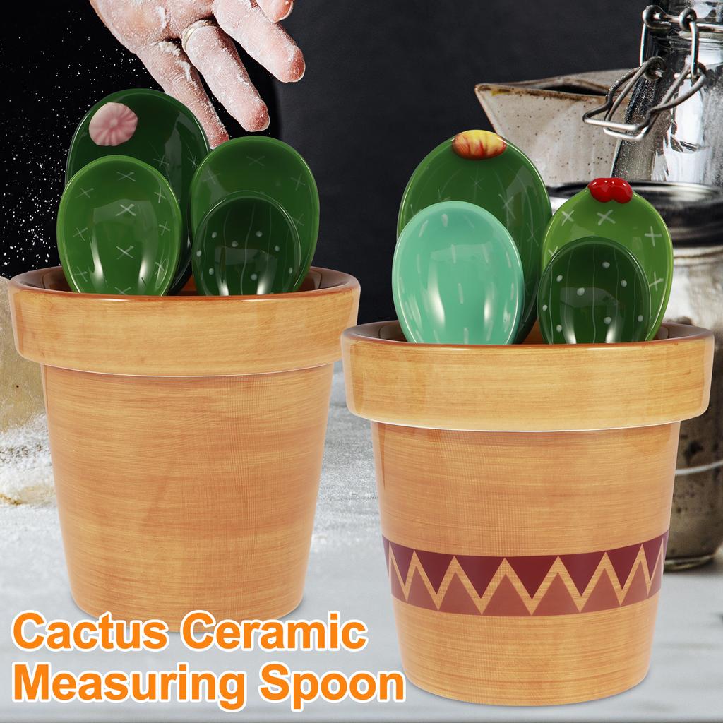 4 Pcs Porcelain Measuring Spoons Set with Base Cute Cactus Shape Stirring Soup Spoon Reusable Ceramic Flower Pot Measuring Spoon — koupit online v obchodě na marketplace Joom