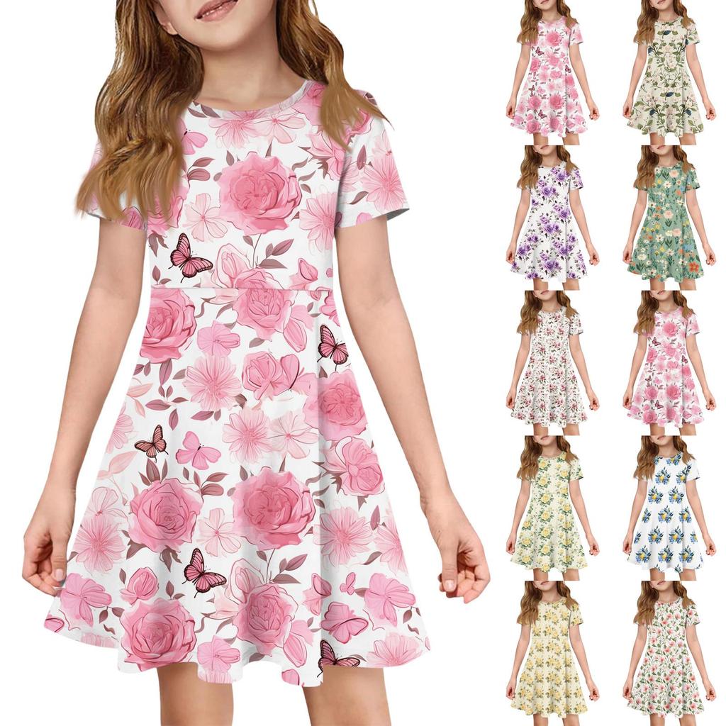 Dívčí letní šaty Barva & Potisk Krátký rukáv Šaty s kapsou Neformální šaty Krátký rukáv Párty šaty Velikonoční den — koupit online v obchodě na marketplace Joom