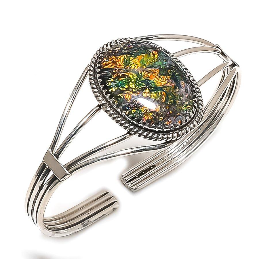 Natural Triplet Opal Gemstone 925 Sterling Silver Cuff Bangle Adjustable ETC-13923