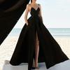 Summer new European and American women's clothing sexy V-neck dress suspender solid color sleeveless fashion evening dress