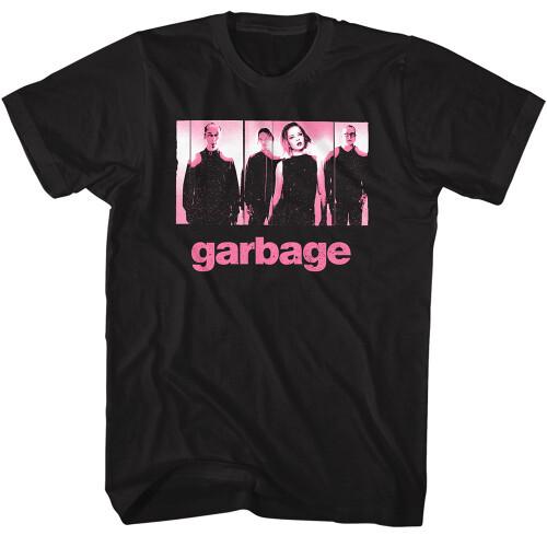 Růžové tričko s offsetovým potiskem Garbage - Černé unisex tričko