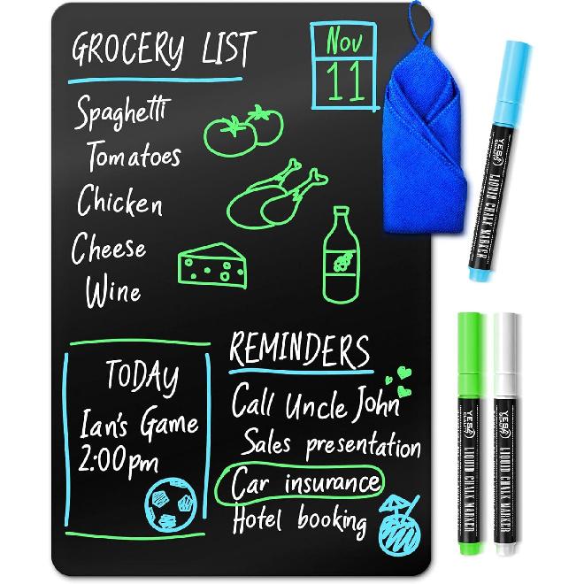 Magnetic Black Dry Erase Board for Fridge (12 x 8 inch), Stain-Resistant w/ 3 Magnetic, Fine-Tip Neon Chalk Markers & Eraser by Yes4Quality — koupit online v obchodě na marketplace Joom