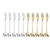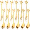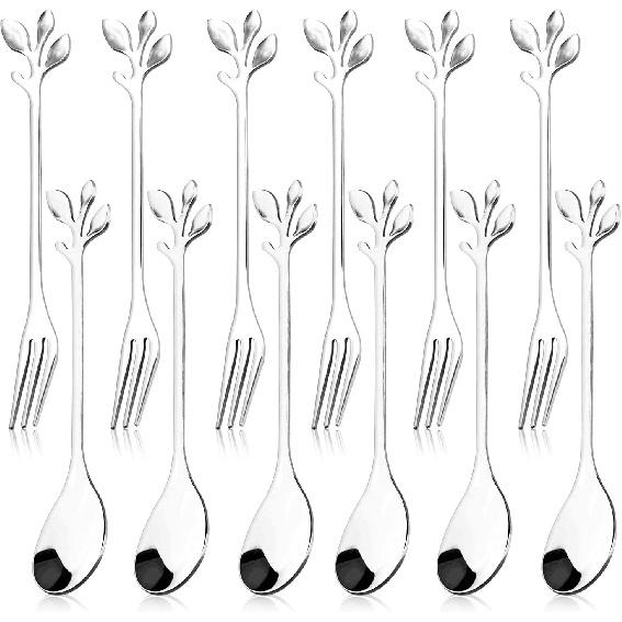 12pcs Stainless Steel Gold Leaf Coffee Spoon and Cake Fruit Forks Kitchen Accessory Wedding Party for Dessert, Salad, Appetizer, Spoon and Fork Set(6